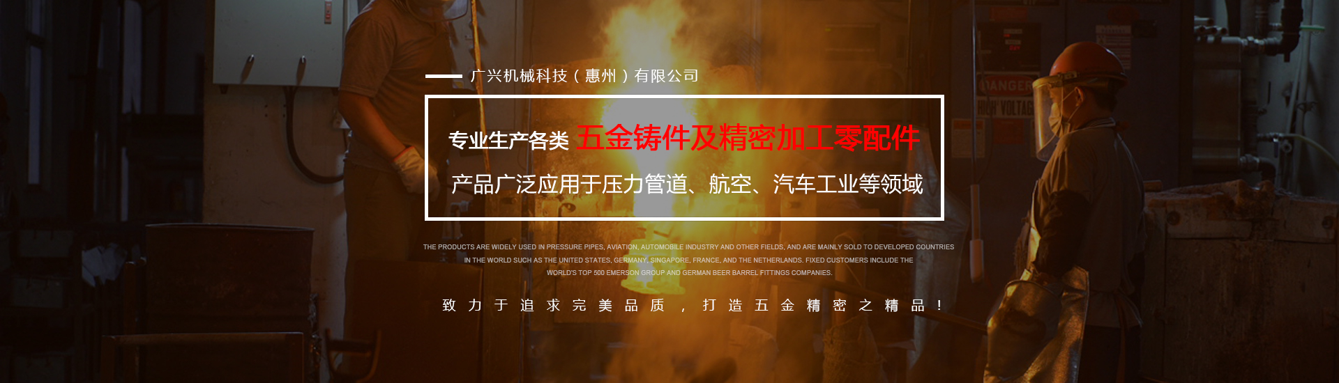 公司專業(yè)生產(chǎn)各類五金鑄件及精密加工零配件,可熔煉材質(zhì)為全系列不銹鋼及碳鋼,主要生產(chǎn)材質(zhì)有304、316、316L、17-4、430、409等,年生產(chǎn)各種不銹鋼鑄件1000余噸。產(chǎn)品廣泛應(yīng)用于壓力管道、航空、汽車工業(yè)等領(lǐng)域,主要銷往美國、德國、新加坡、法國、荷蘭等世界發(fā)達(dá)國家,固定客戶有世界500強(qiáng)艾默生集團(tuán)及德國啤酒桶配件公司。